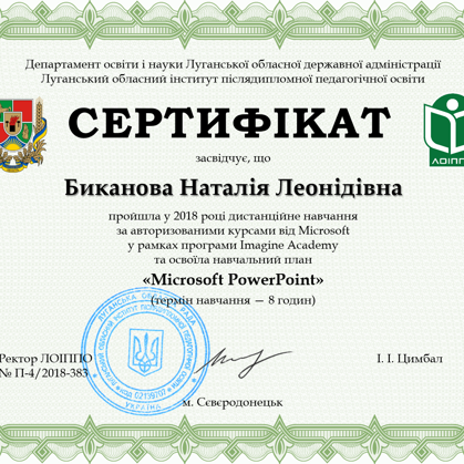 Биканової Наталії Леонідівни